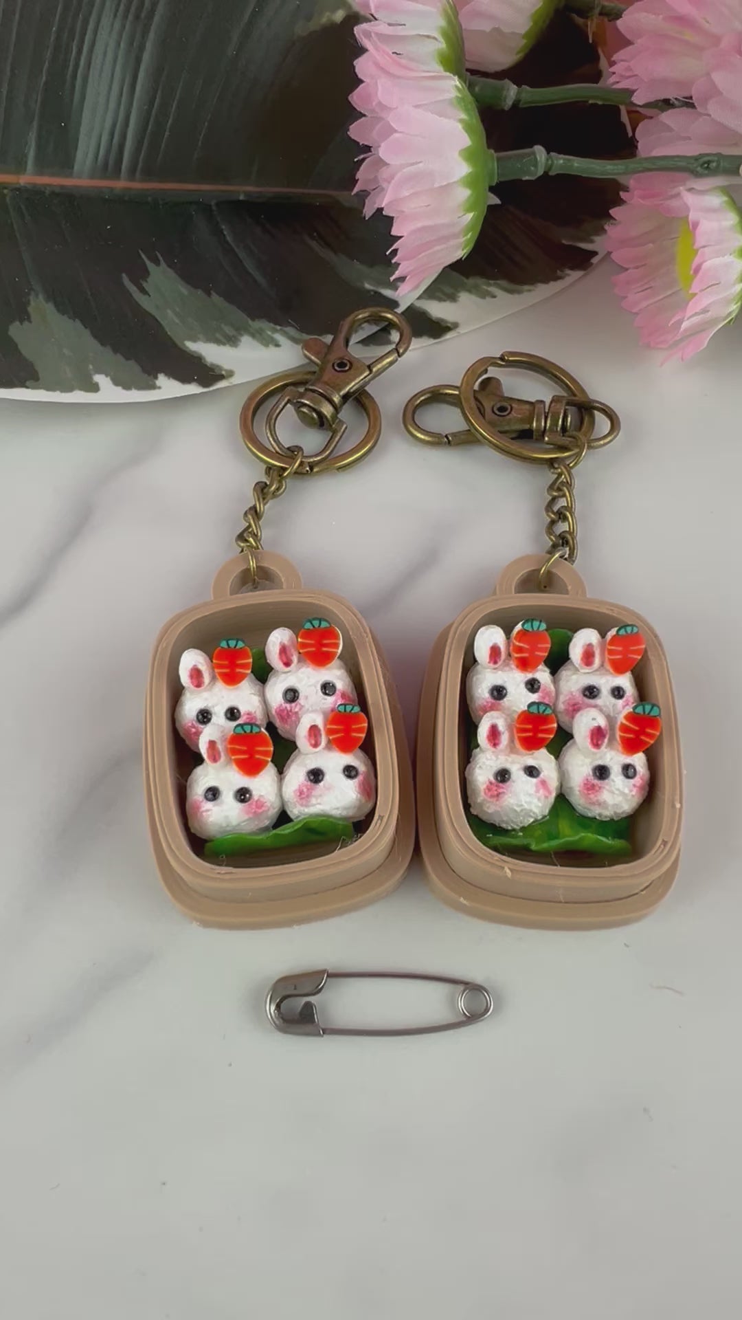 Bento Box Rice Bunny Kawaii KeyChain (Polymer Clay)