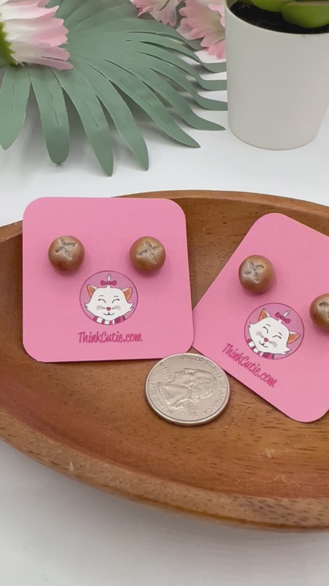 These miniature bread buns are handmade out of polymer clay and painted to look realistic. They are studs and only 1/4 of an inch around. Very lightweight and hypoallergenic.