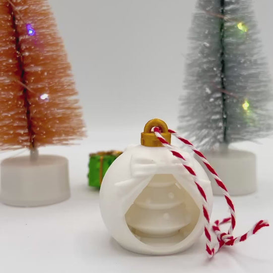 This 3D Christmas Tree Ornament is perfect for the holidays. The inside Christmas Tree spins inside and goes well with small to larger size trees. The bulb is 1.5 inches tall and wide. Very light weight, 2 oz.