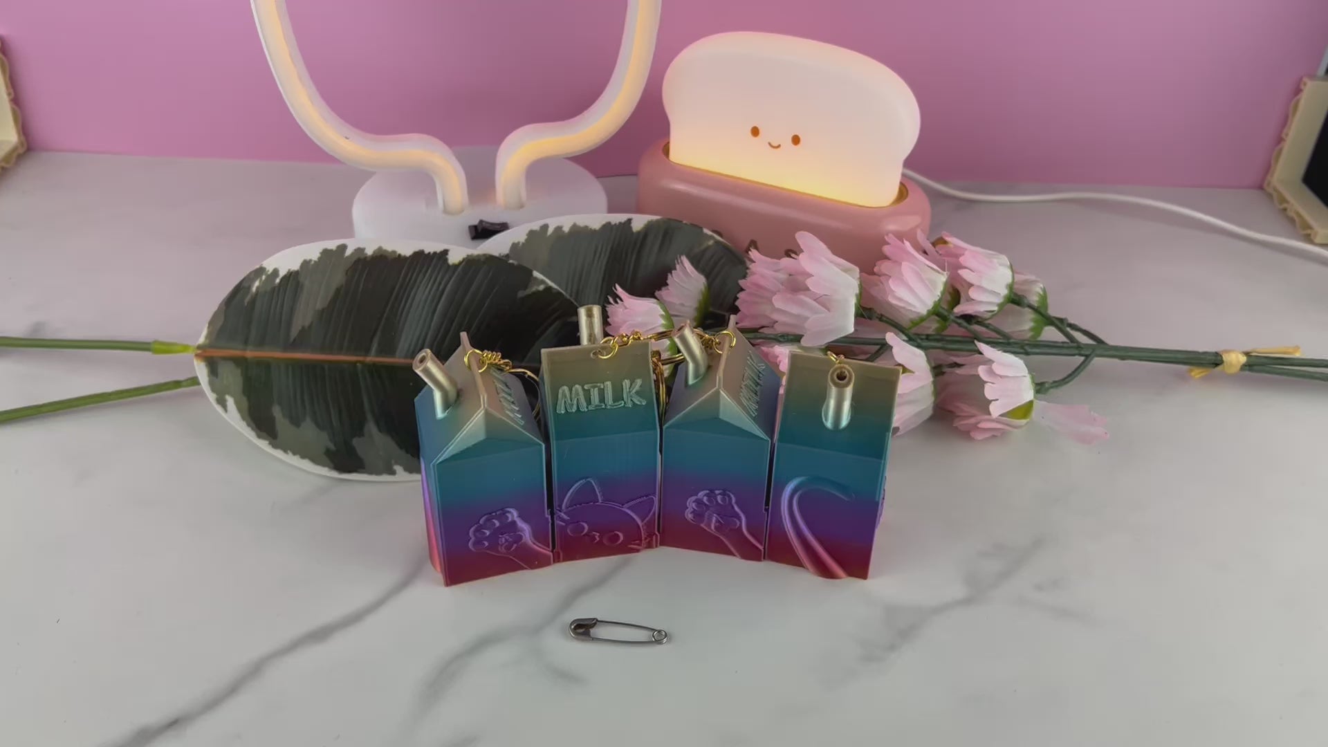 Mystery Milk Carton Keychain - Cat Themed Rainbow Keychain With Mystery Color