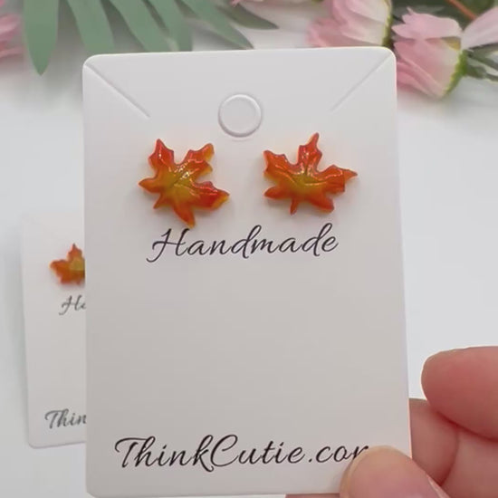 Feel cozy in fall with these little stud earrings are handmade out of polymer clay and painted to match the outdoor scenery. Each earring is about 1/2 an inch wide and tall.