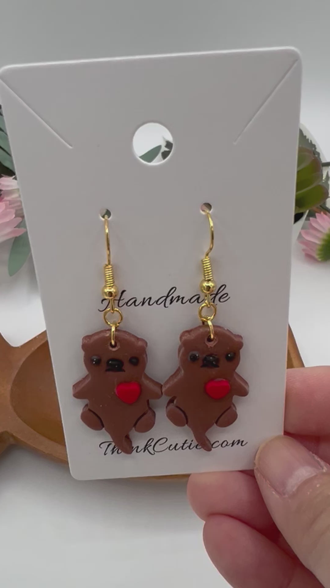 These little otters are handmade and come with a little heart. They are handmade out of polymer clay. They are perfect for nature or animal lovers. They are 1.25 inches tall and .75 of an inch wide, very light weight.