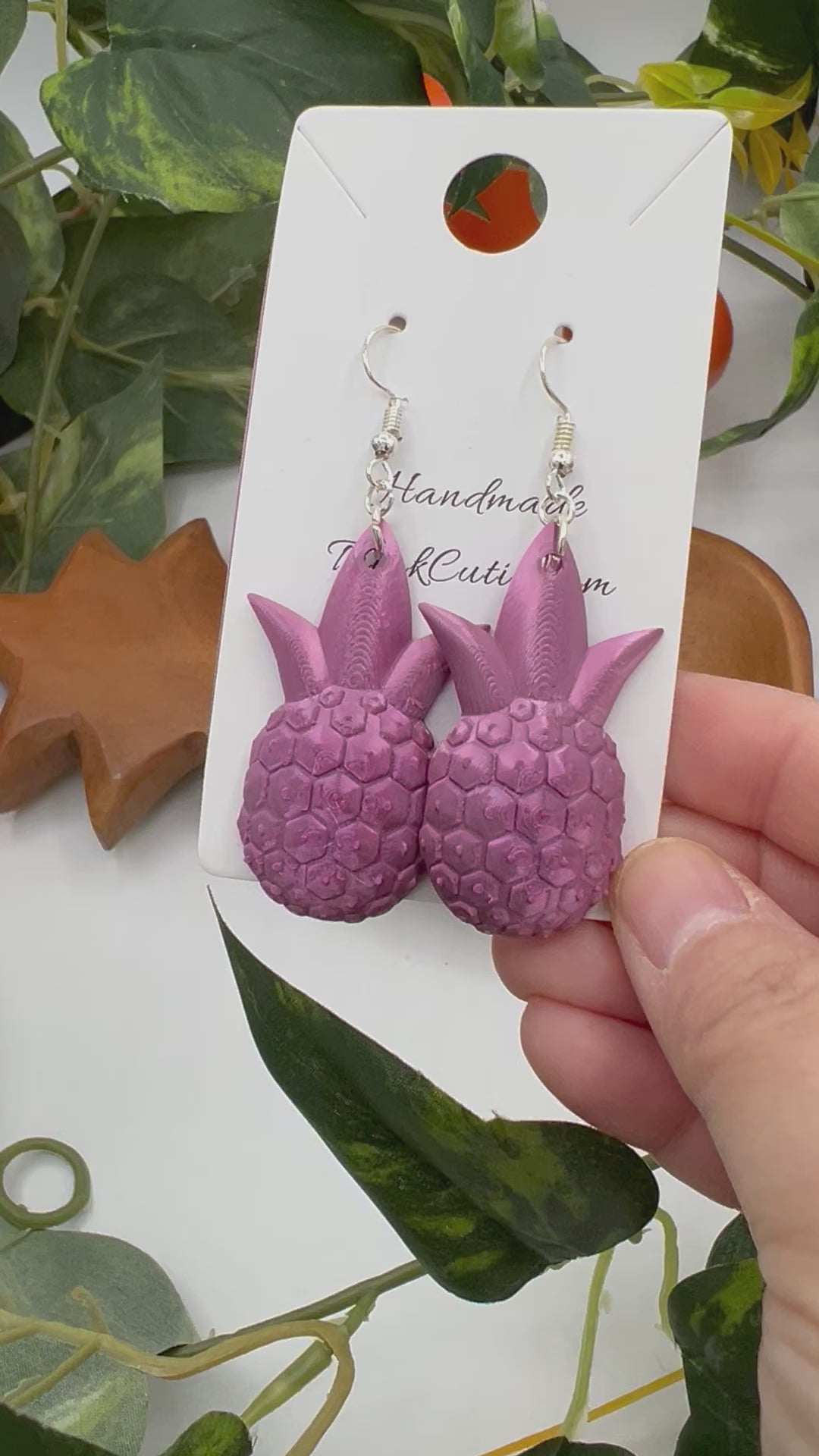 These 3D Pineapple Earrings were designed and created in our studio. Those who love summer, fruit, and the tropics will vibe with these earrings. They are very lightweight and are 1.5 inches long and 1 inch wide. These are dangle earrings and are nickel free.