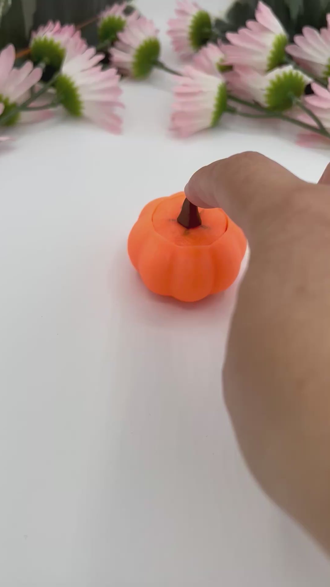 This mini pumpkin Keycap clicker is perfect for those who need to fidget. This little pumkin is made out of glow in the dark material. It is about 2 inches wide by 2 inches tall. Lightweight and fits in the palm of your hand.